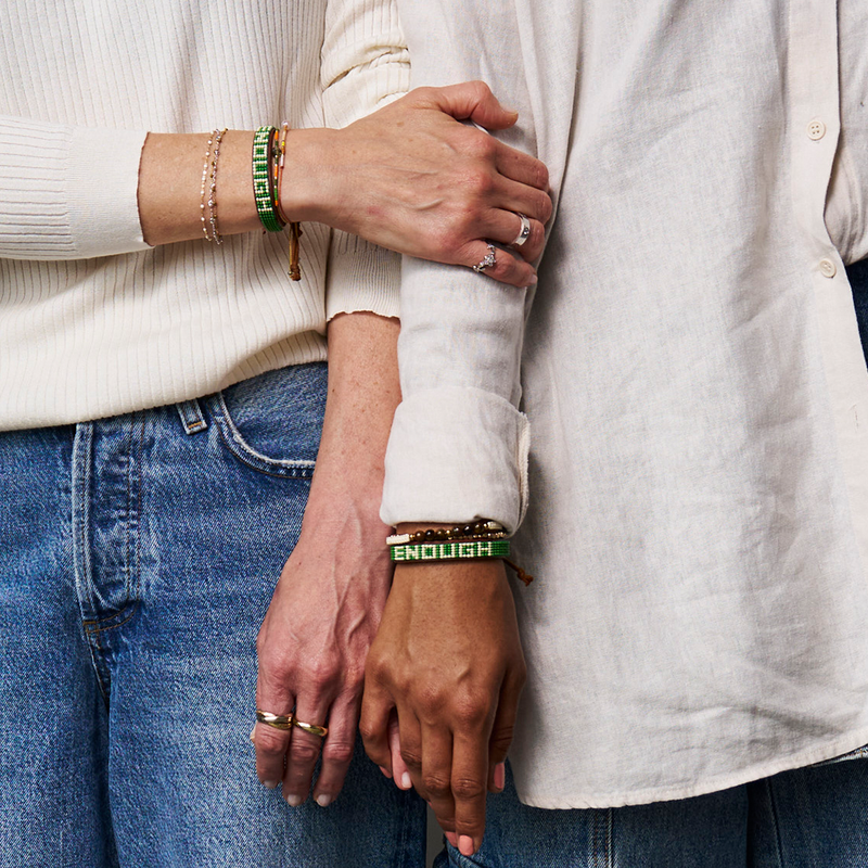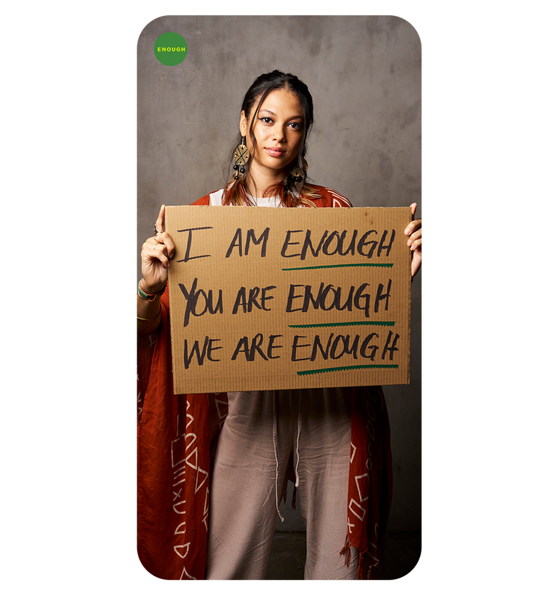 ENOUGH exists to remind people of what’s already true: that we are enough, exactly as we are. Each bracelet, shirt, message, and conversation is a push back against the idea that we have to earn our worth. Help us spread the word until the whole world believes it.